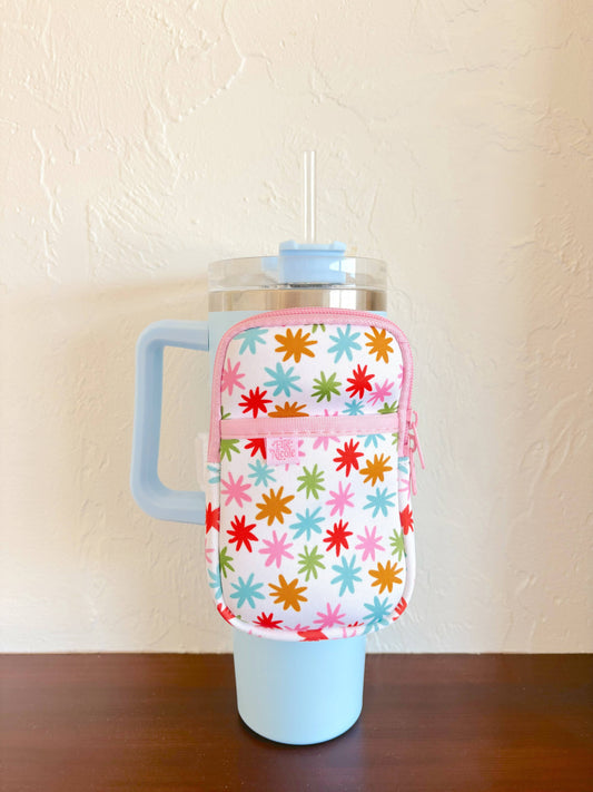 Coffee Cup Cover - Checkered Floral - Iced Drink Sleeve