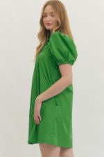 Green Collared Dress with Pleat Details