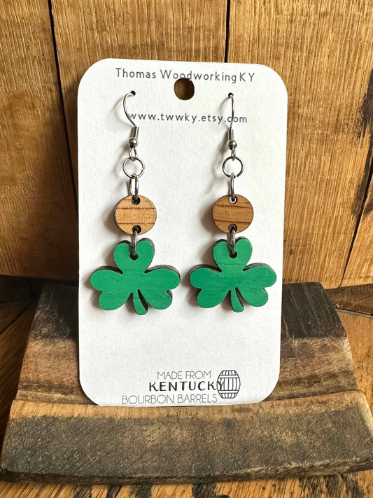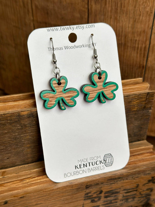 Kentucky Bourbon Barrel Shamrock Dangle Earrings