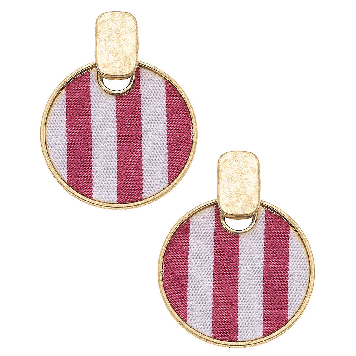 Elevate your vacation look with our Cabana Stripes Disc Earrings in Fuchsia, Green or Black. These classic earrings are the perfect addition to your summertime style, adding a pop of color and sophistication. Embrace the warm weather and stand out from the crowd with these stylish earrings.