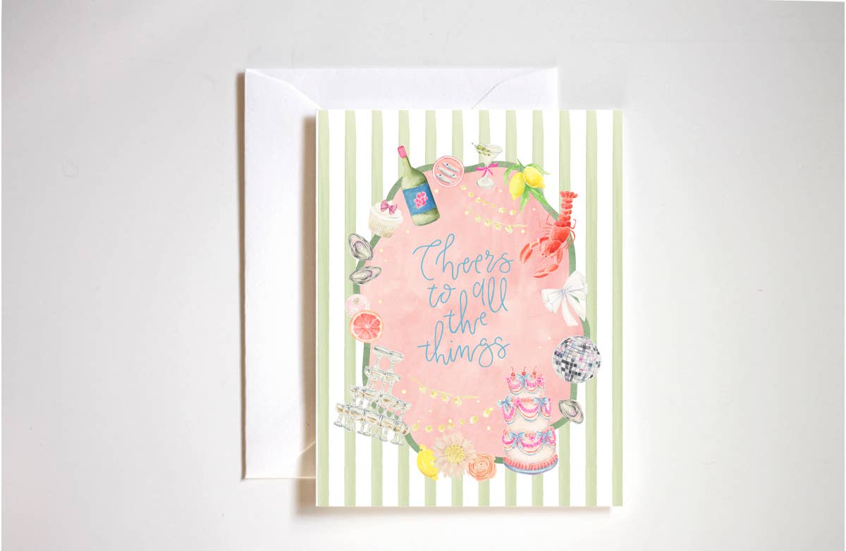 Cheers to all the things! There's always so much to celebrate and we love a party. This card encompasses so many fun details of today's soirees.