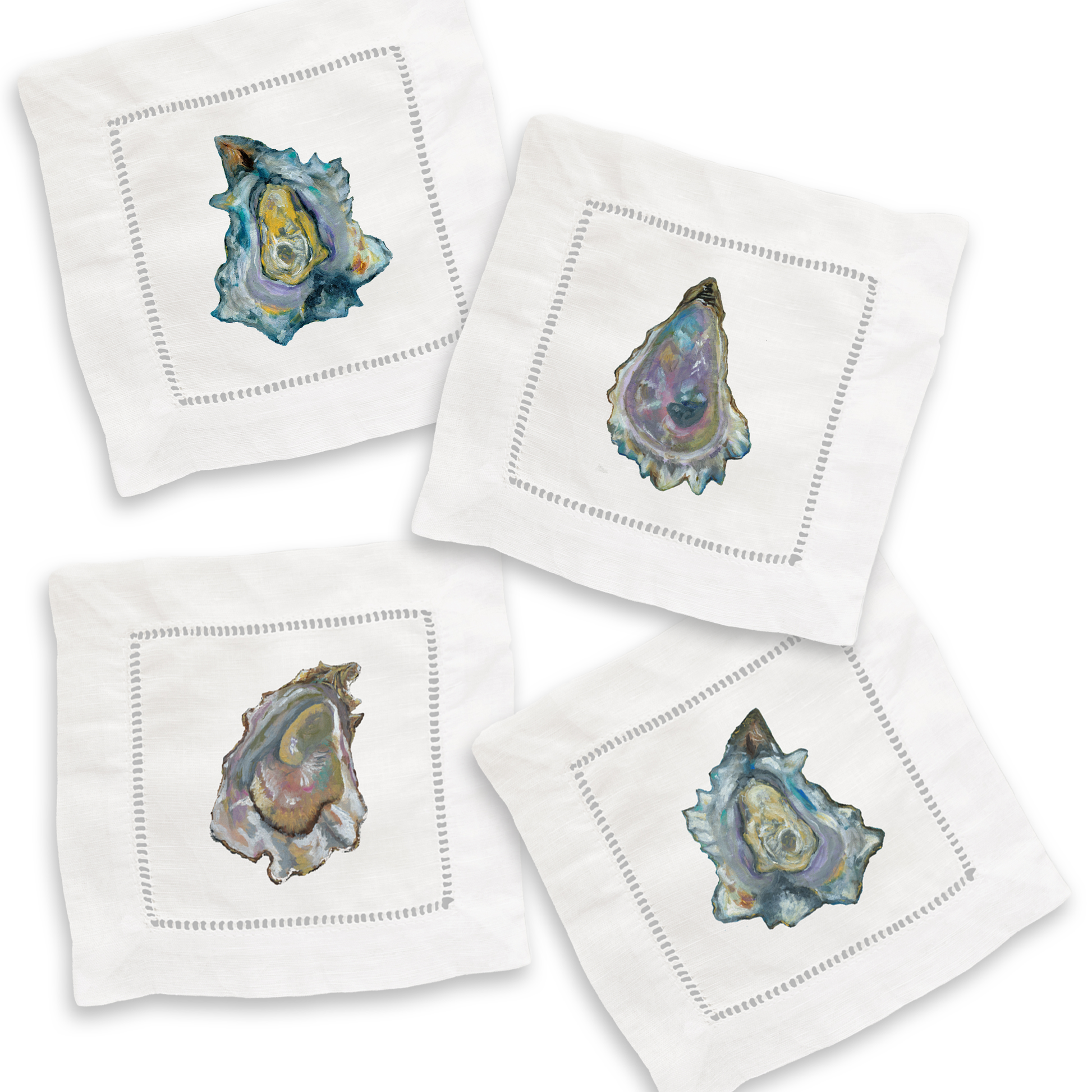 Colorful Oysters Mixed Linen Cocktail Napkin Set