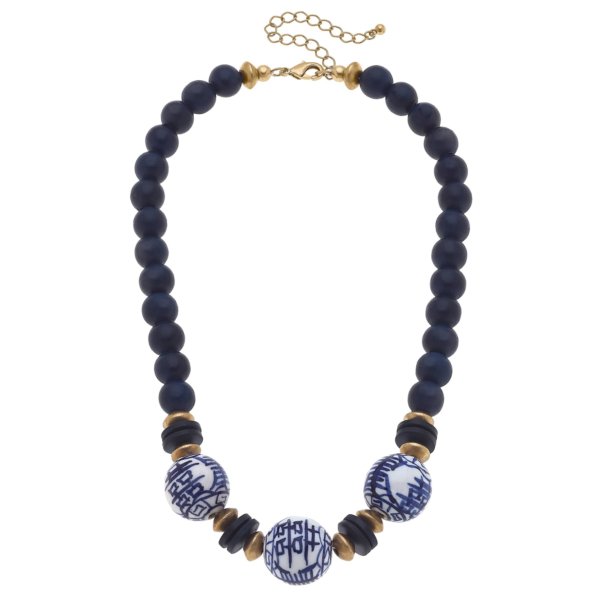 Hazel Chinoiserie & Painted Wood Necklace in Navy