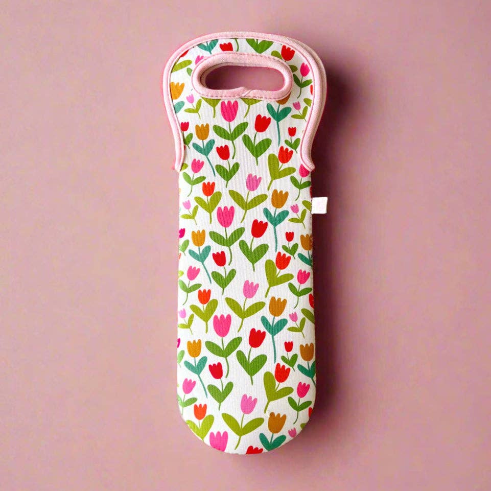 Insulated Wine Bag / Wine Gift Tote - Tulips