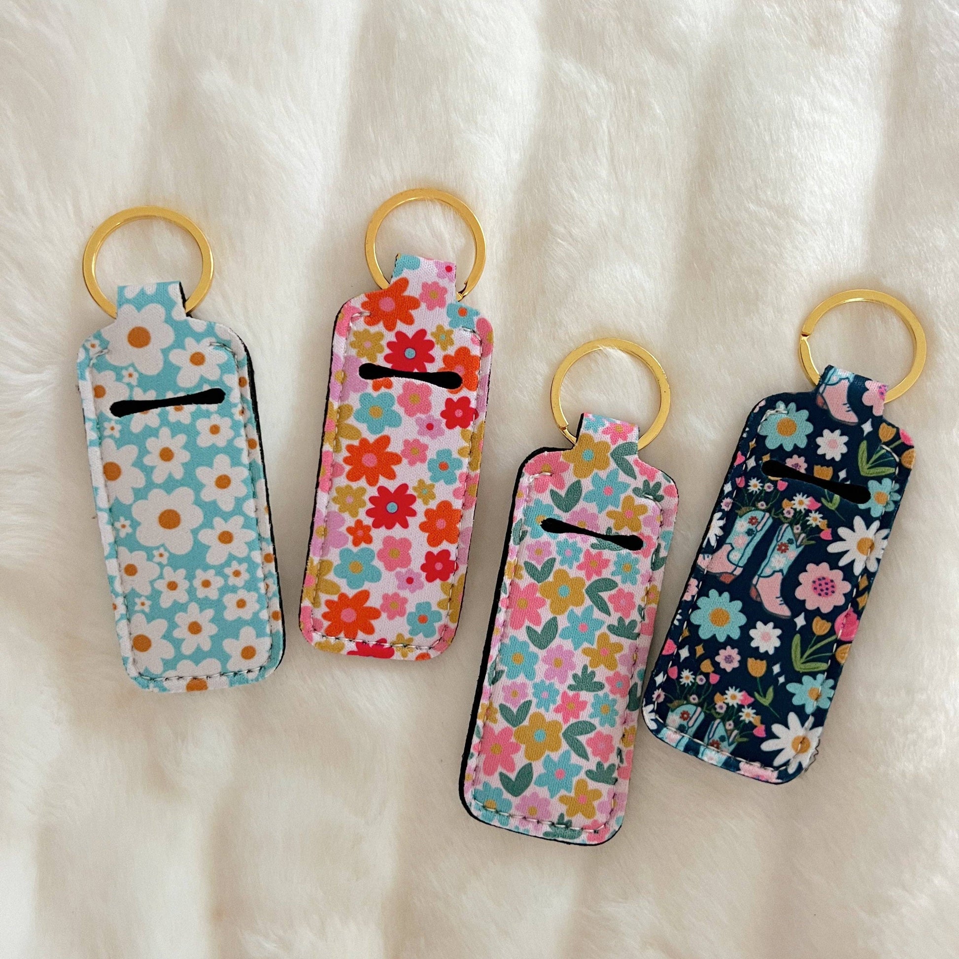 Keep your lips moisturized and looking cute on the go with our Lip Balm Keychain Holder! This compact case, featuring adorable Ellē Nicole designs and a zinc alloy gold key ring, is made from durable neoprene so you can keep your lip balm insulated and close at hand! Will fit most standard lip balms! Makes a great gift or a stocking stuffer!