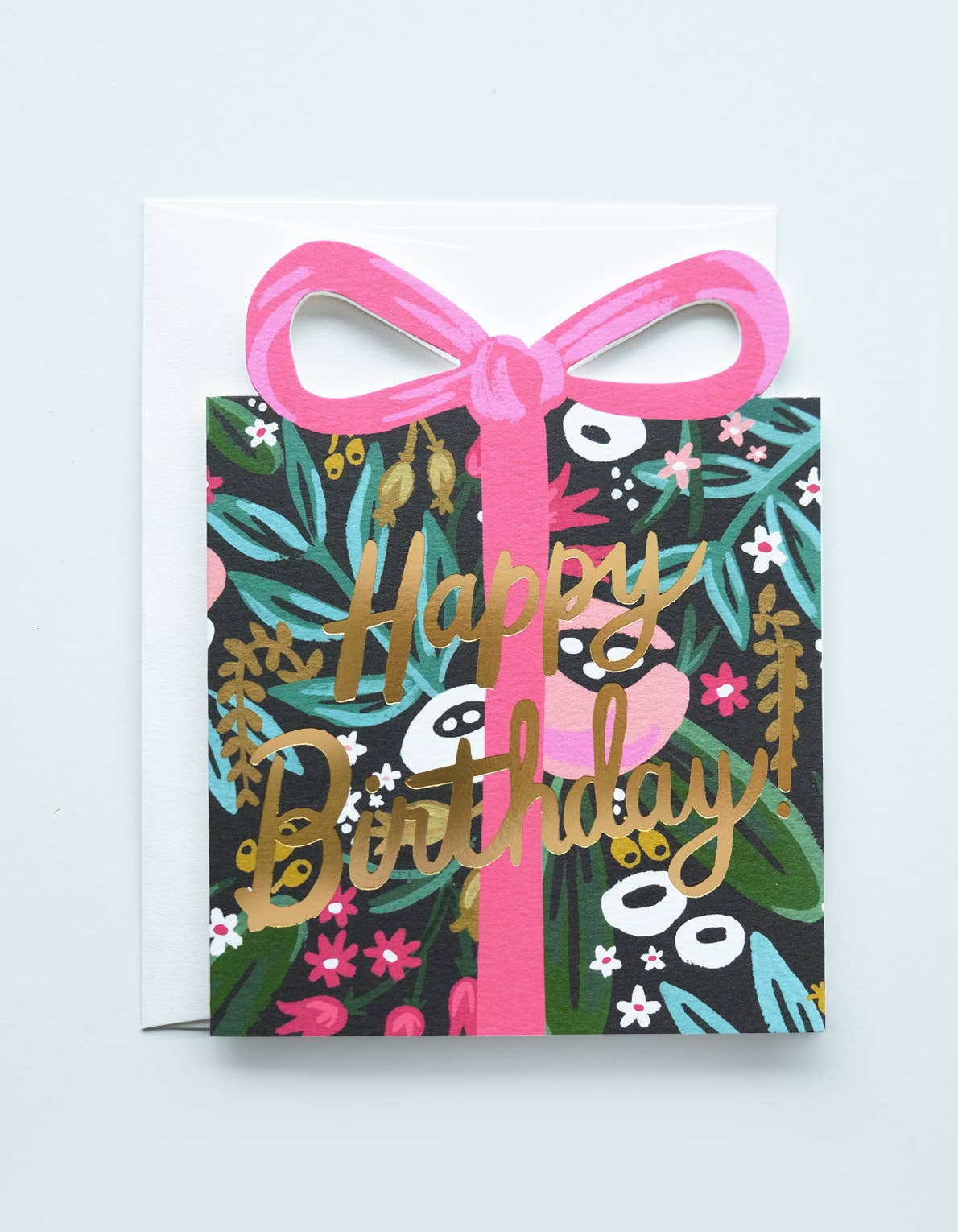 This pretty, die cut present sends Happy Birthday wishes in accented gold foil detail.