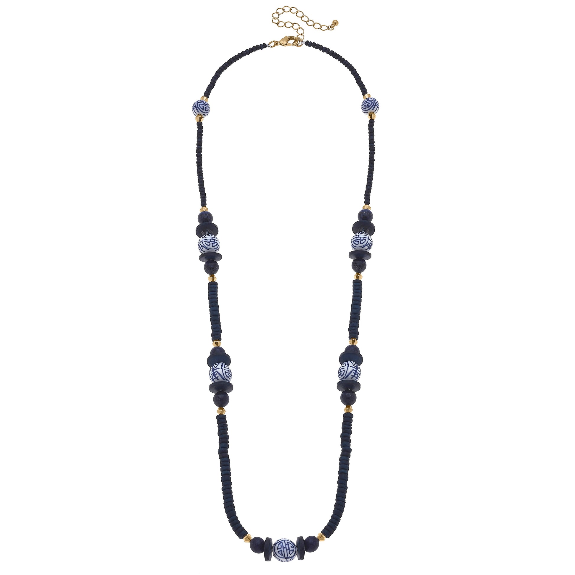 Savoy Chinoiserie & Painted Wood Necklace in Navy
