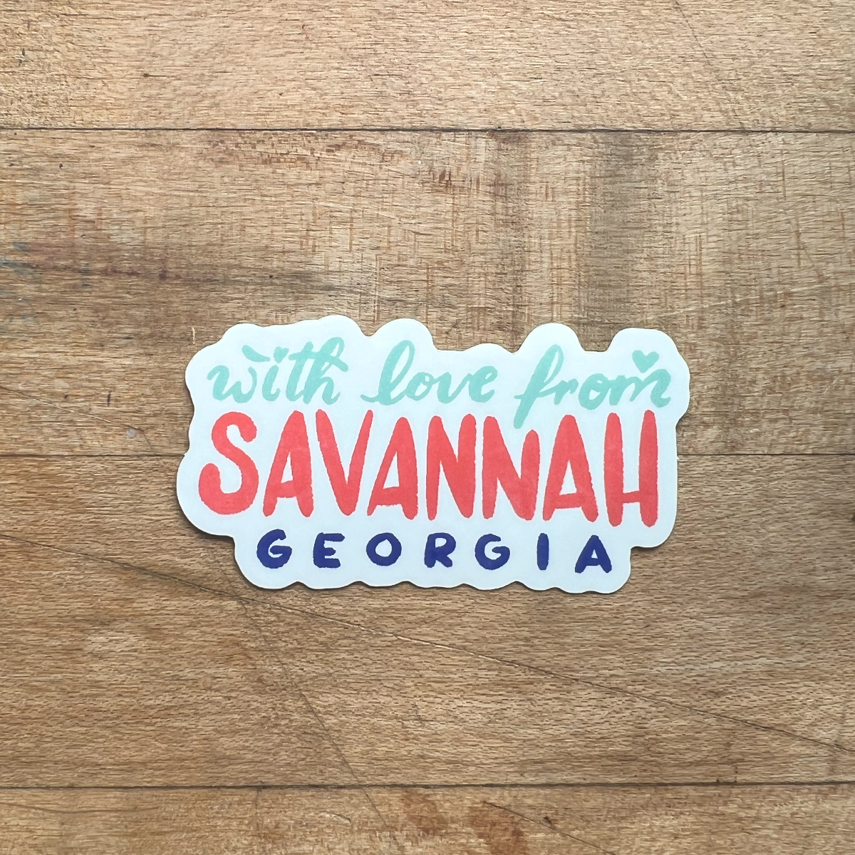 Our “with love from Savannah” sticker is the perfect little something to include with your greeting to a friend far away!